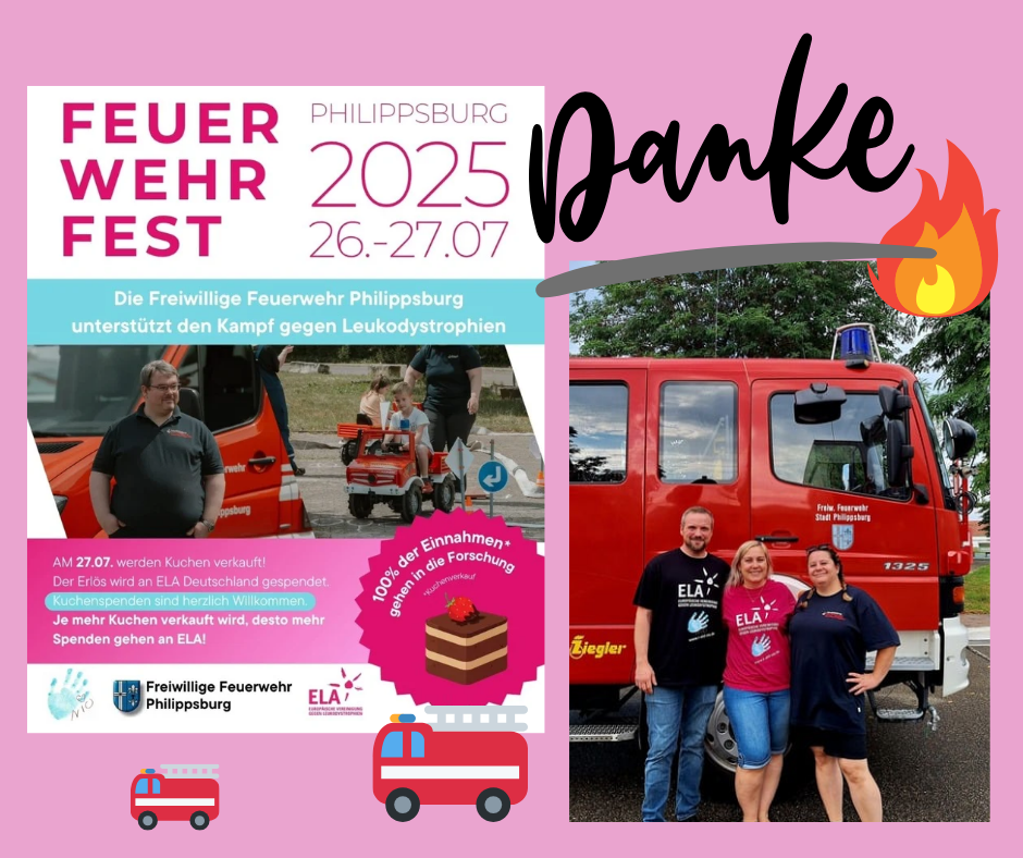 Die Freiwillige Feuerwehr Philippsburg unterstützt mich in meinem Wunsch, ELA Deutschland e.V. zu unterstützen, um die Forschung der Leukodystrophie-Erkrankungen weiter voranzutreiben.